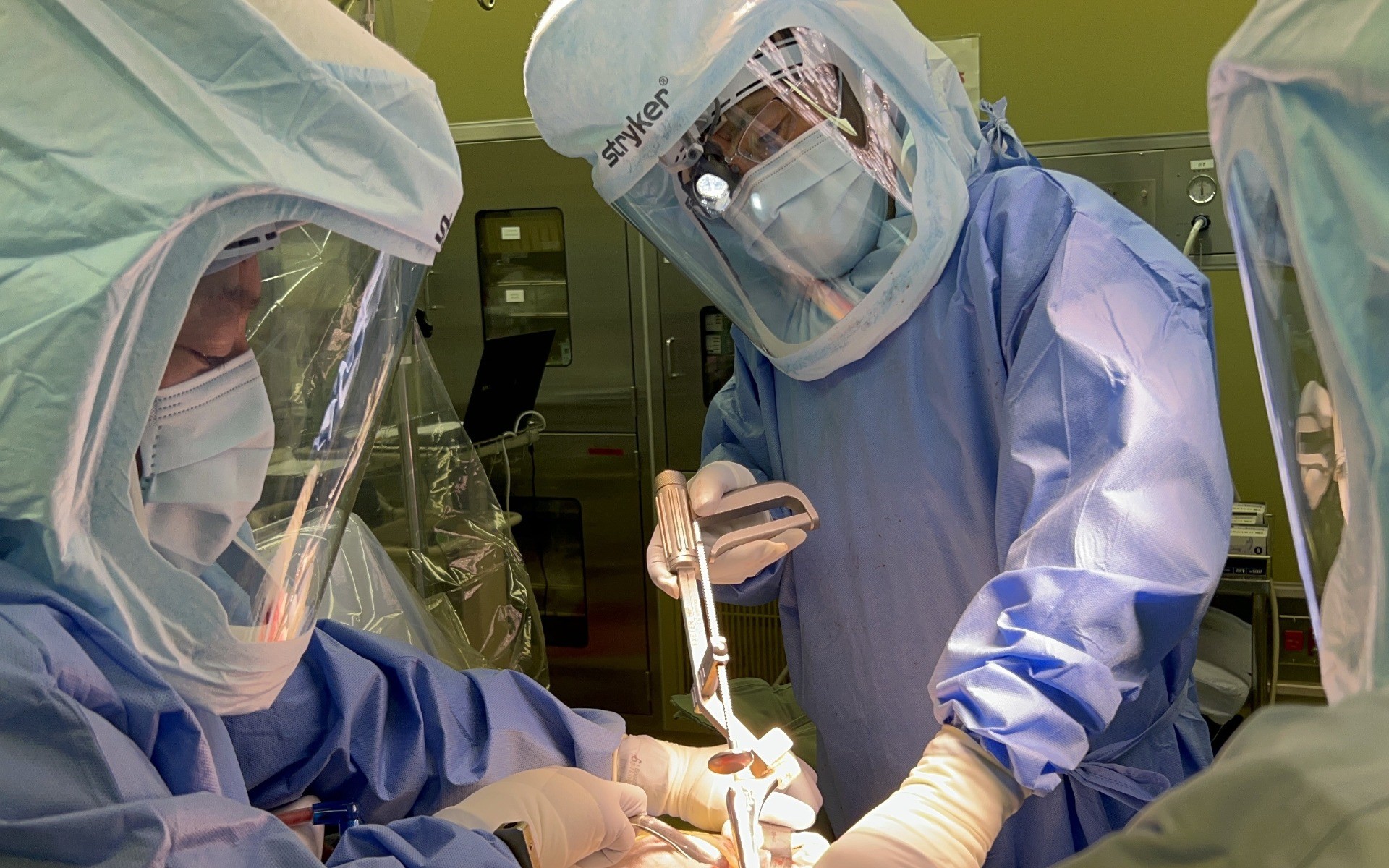 小林医師:2024年1月に新棟が開設され、3月からハイブリッド手術室が使えるようになりました。ハイブリッド手術室は、血管造影X線やCT画像撮影装置が一体となった手術台を備える設備です。整形外科の手術では、これまでも三次元のナビゲーションシステムを活用してきました。しかしハイブリッド手術室で術中にCTによる精密かつ広い範囲の立体断層画像を確認でき、より精度の高い脊椎インプラント手術が可能になりました。また脊柱変形矯正手術などにおいては頚椎から骨盤までの広い範囲をX線イメージで撮影して、矯正の程度を確認し、微調整することが容易になりました。